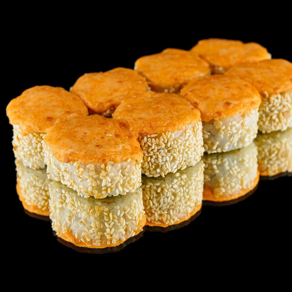 Состав: рис черный, нори, ананас, грудка копченая, сыр Чеддер, кунжут