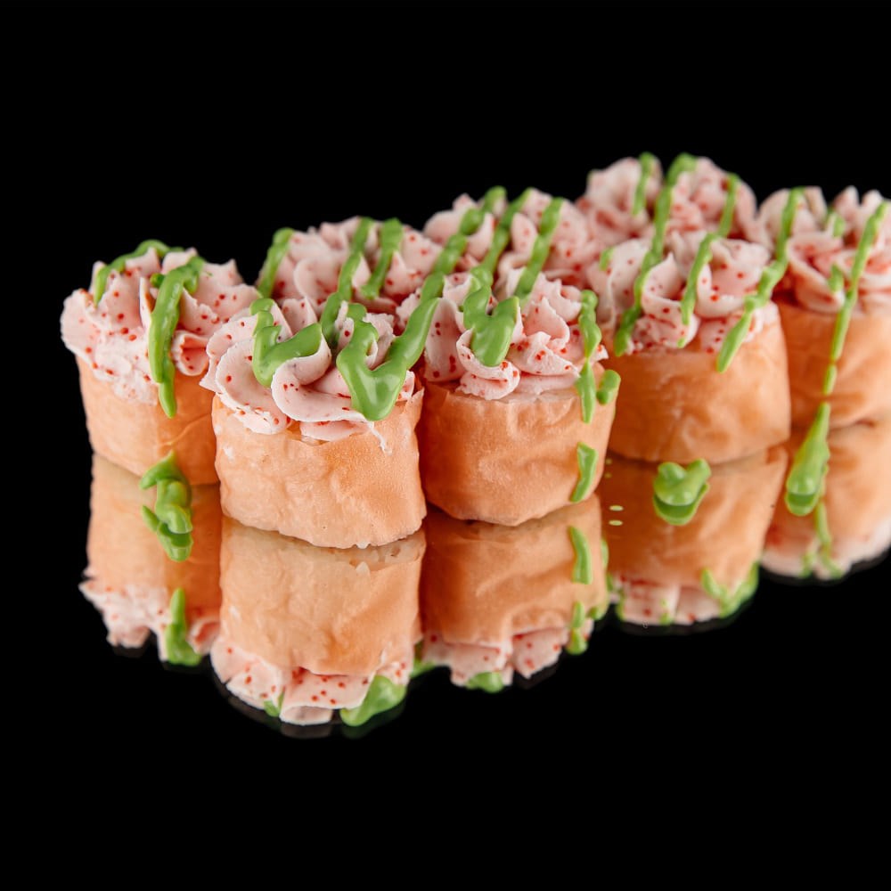 Состав: рис, маменори красный, тунец, перец болгарский, сыр с масагой, соус васаби