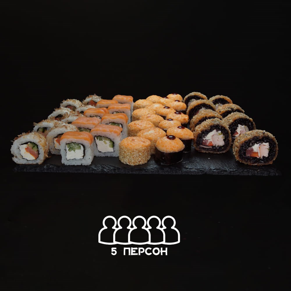 Монако: рис, водоросли нори, сыр творожный, креветка отварная, огурец икра масаго, сырный соус для запекания, соус унаги, соус чили манго