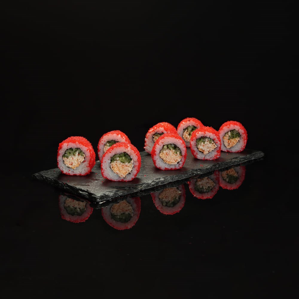 Состав: рис, водоросли нори, снежный краб, огурец, икра масаго