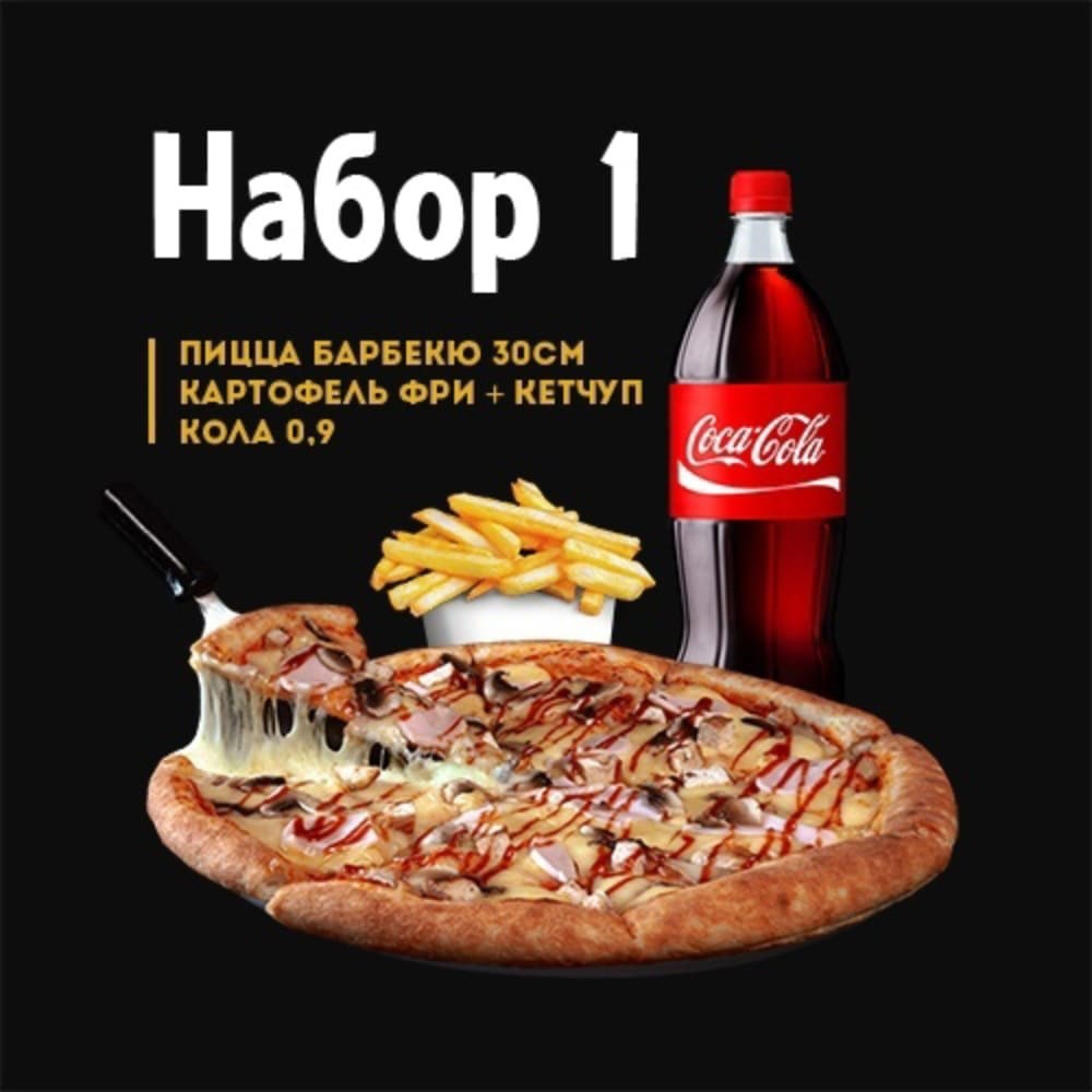 Пицца барбекю 30 см: тесто для пиццы, красный соус, сыр моцарелла, ветчина, грибы шампиньоны, куриное филе жаренное, соус барбекю