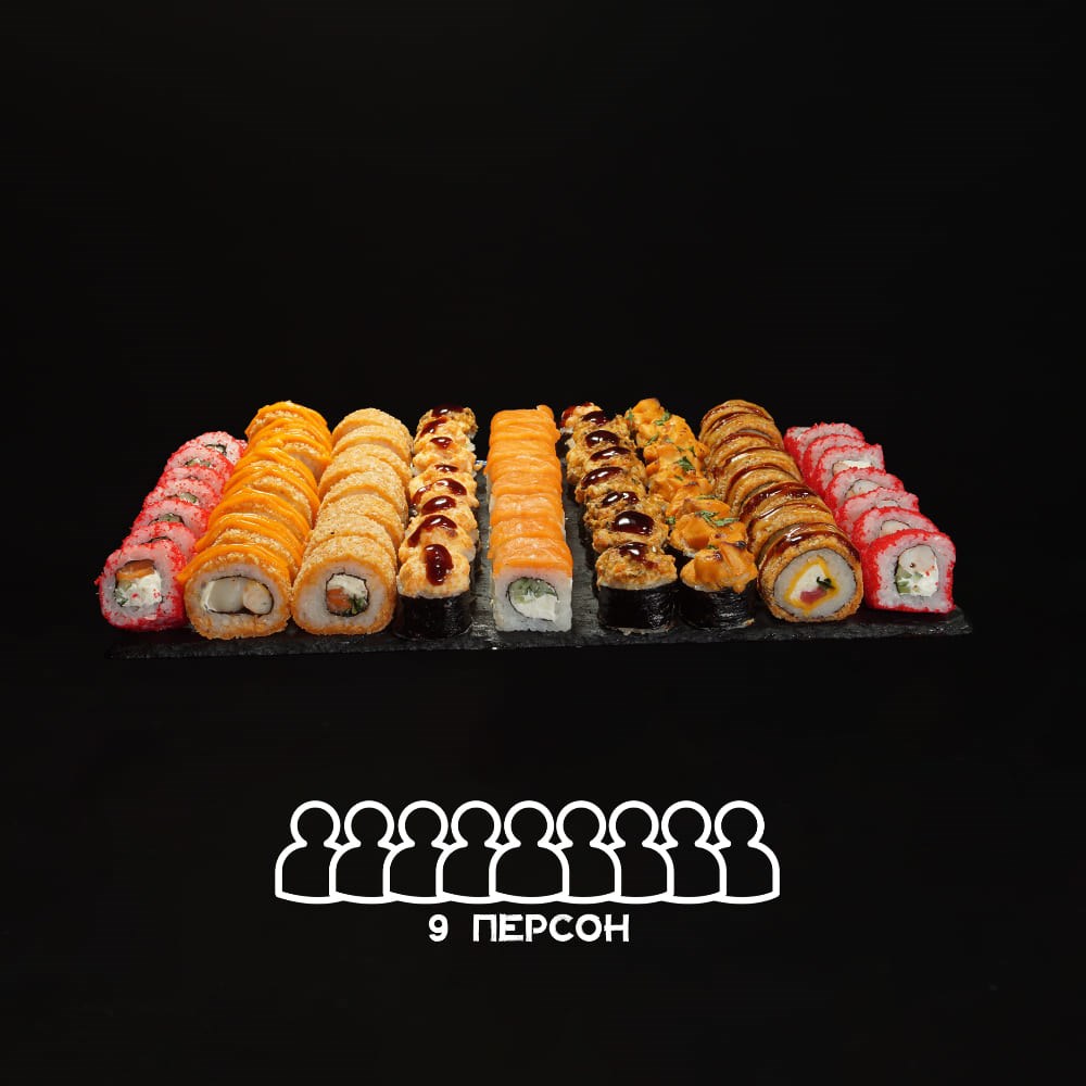 Монако: рис, водоросли нори, сыр творожный, креветка отварная, огурец икра масаго, сырный соус для запекания, соус унаги, соус чили манго