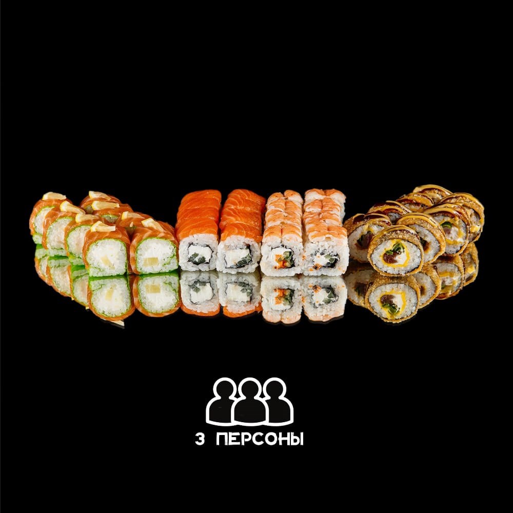 Монако: рис, водоросли нори, сыр творожный, креветка отварная, огурец икра масаго, сырный соус для запекания, соус унаги, соус чили манго
