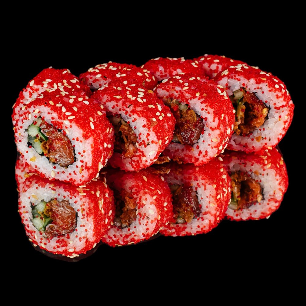 Состав: рис, нори, лосось, лук жарен., огурец, масаго, кунжут