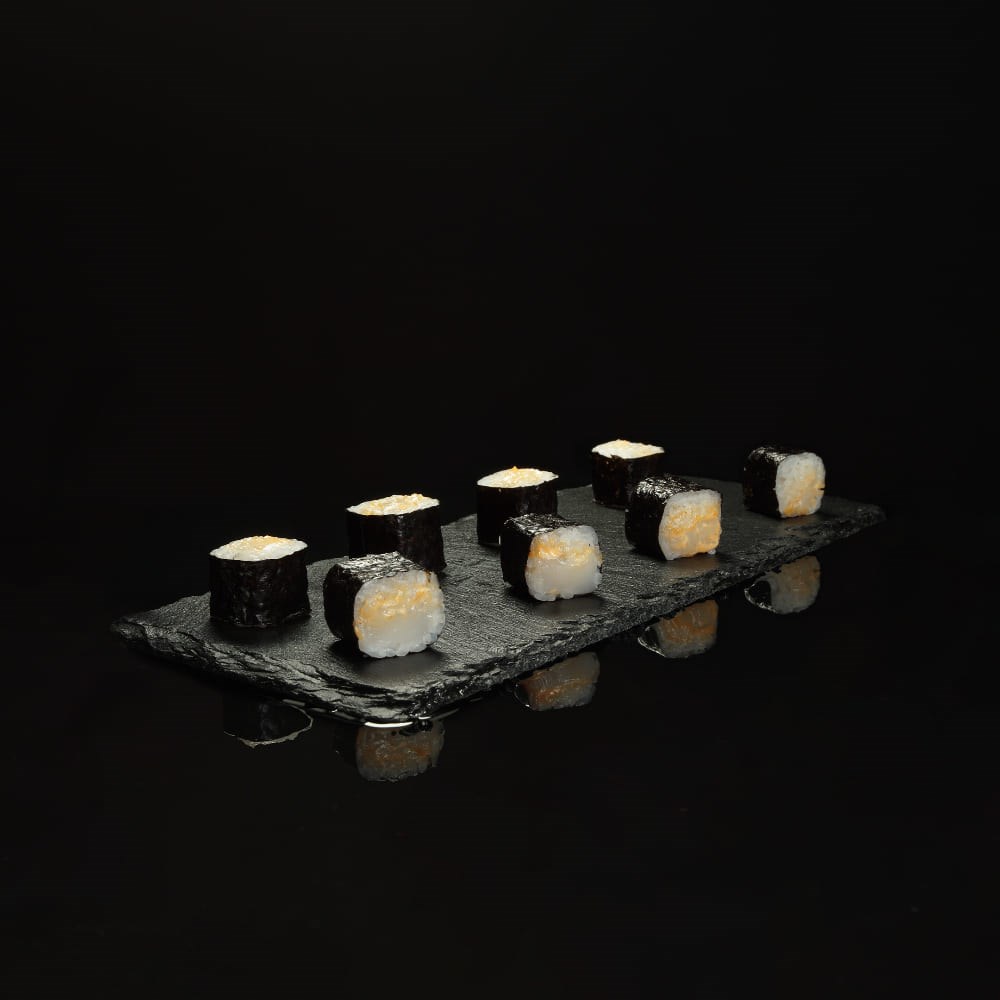 Состав: рис, водоросли нори, морской гребешок, соус спайси