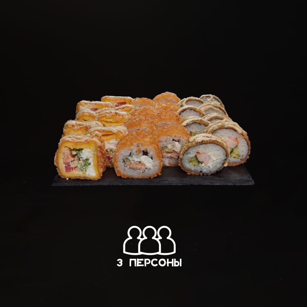 Монако: рис, водоросли нори, сыр творожный, креветка отварная, огурец икра масаго, сырный соус для запекания, соус унаги, соус чили манго