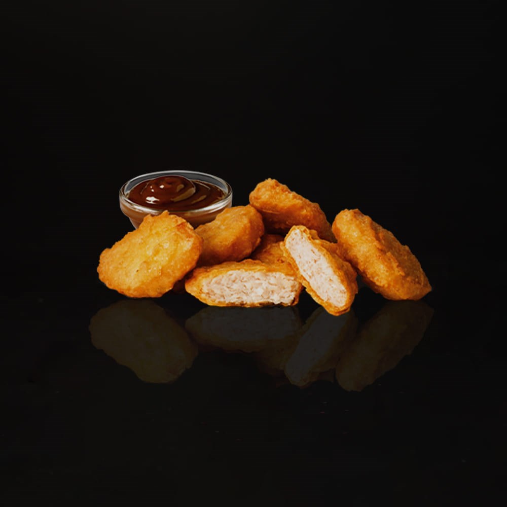 Состав: кусочки нежного куриного филе в хрустящей панировке В порции 6 шт