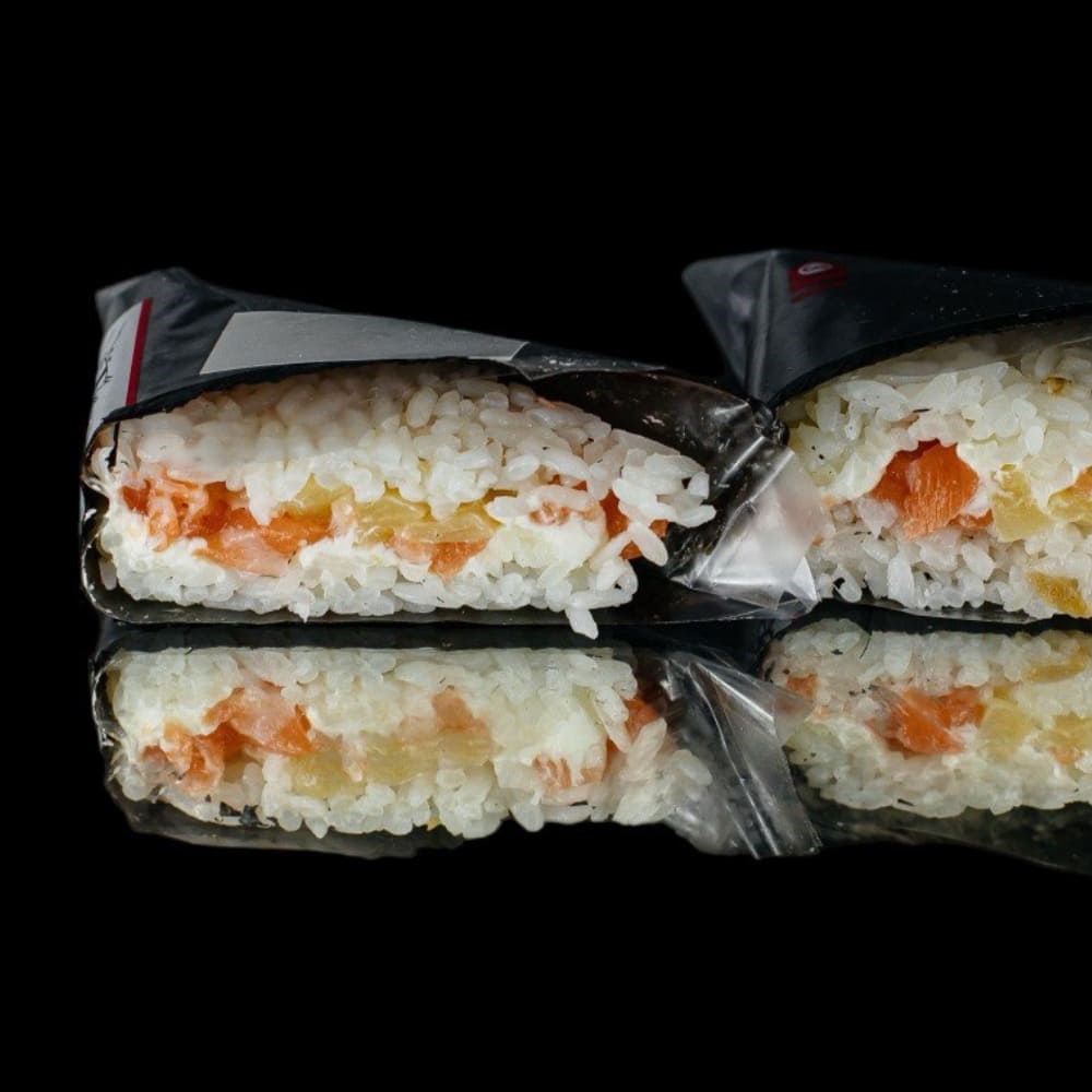 Состав: рис, нори, сыр творожный, лосось филе, ананас