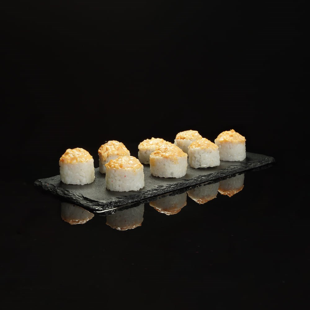 Состав: рис, водоросли нори, сыр творожный, огурец, креветка отварная, соус спайси