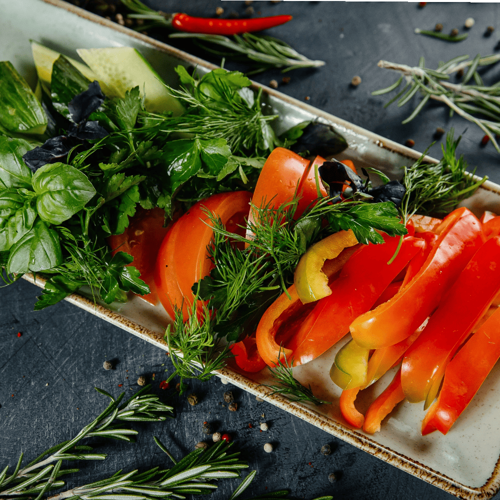 Состав: баклажан, цукини, помидоры, перец болгарский, кинза, чеснок