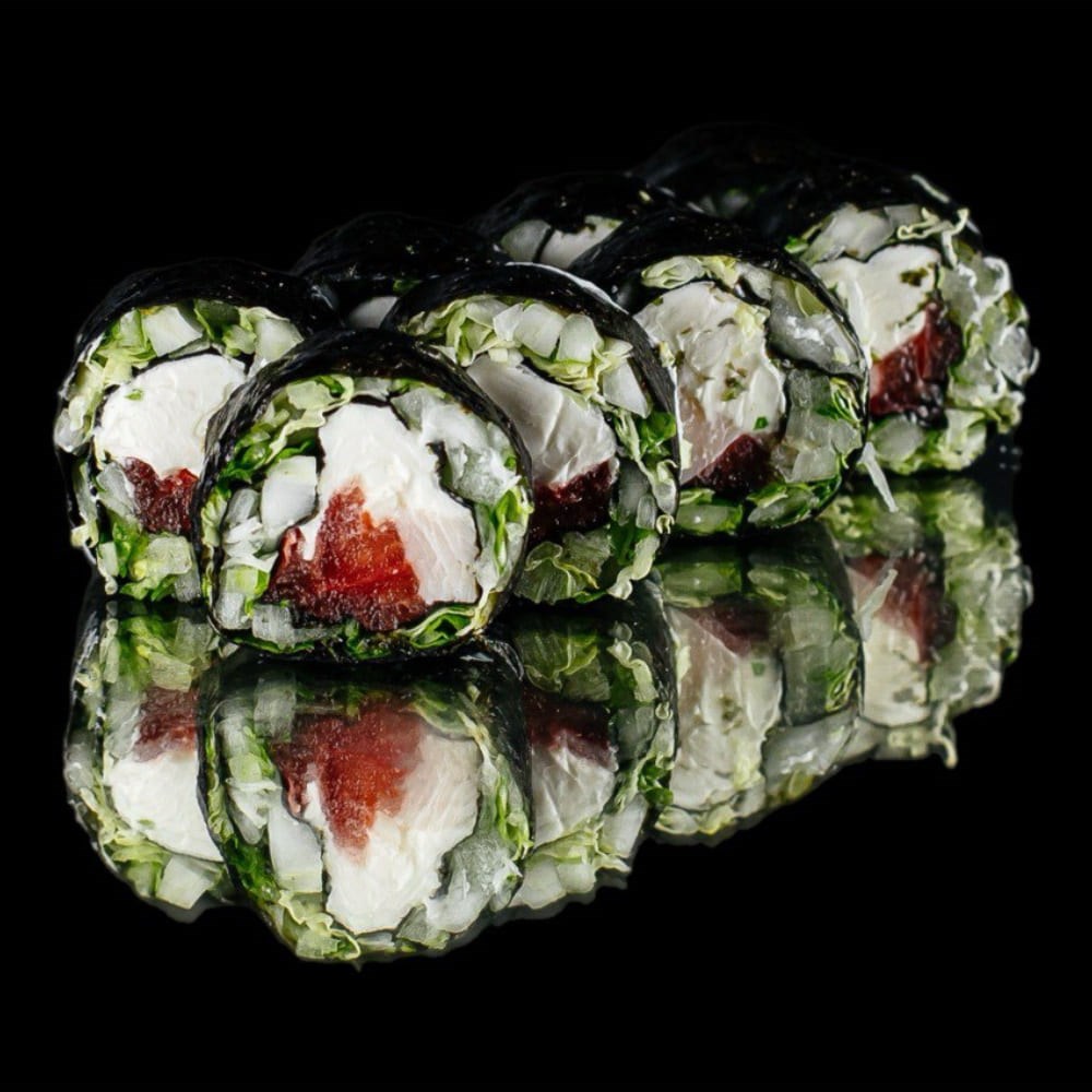 Состав: нори, пекинская капуста, сыр творожный, курица копченая, помидоры