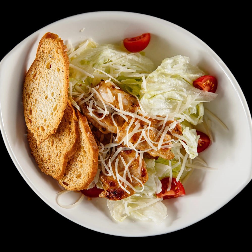 Состав: сухарики, айсберг, соус, черри, курица, пармезан