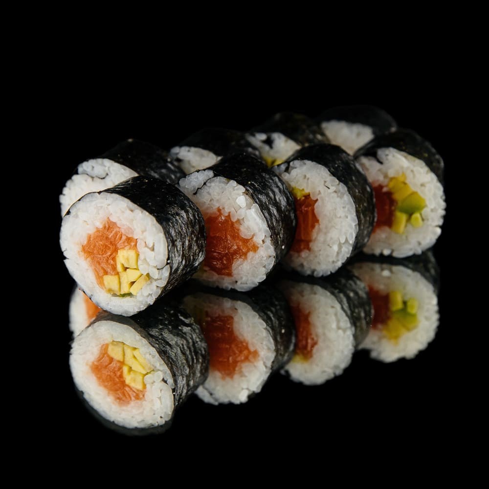 Состав: рис, нори, авокадо, лосось филе
