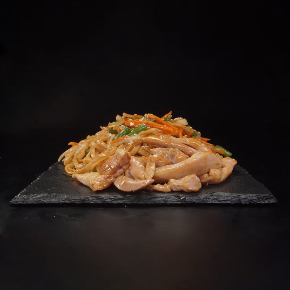 Состав: масло подсолнечное, филе красного мяса, морковь, лук репчатый, фасоль стручковая, перец болгарский, бульон суимоно, соевый соус, лапша удон, соус на выбор, кунжут белый